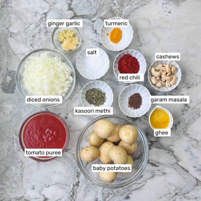 - Vegan Dum Aloo – Use cooking oil instead of ghee and soak cashews in water instead of milk.